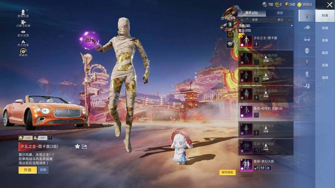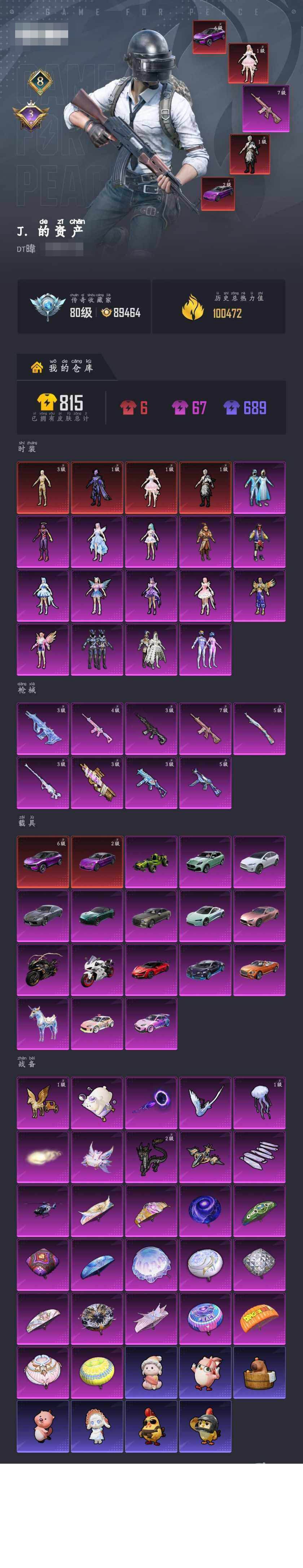 速玩号!4神装-15粉装-9特效枪-19载具-10粉色飞行器-8王牌印记-173套装-203枪皮【红色载具】:路特斯ELETRE(电光紫)(六级),仰望U7(雷霆紫)(二级)【红色神装等级】:宇宙意志-塞卢姆(一级),梦海之灵-妮芮妲(一级),墨龙九天-敖渊(一级),沙丘之主-图卡盟(三级)【红色角色神装】:宇宙意志-塞卢姆,梦海之灵-妮芮妲,墨龙九天-敖渊,沙丘之主-图卡盟【热门品类】:粉装-雪国幻梦,粉装-梦幻火箭,套装-冥河战士,套装-金羽特工,套装-SS1特训,套装-浪漫波比,角色-8号机,角色-Mark.06,熔岩游骑兵连帽夹克【粉色套装】:粉装-雪国幻梦,粉装-梦幻火箭,粉装-天禅智恒,粉装-苍蓝魅影,粉装-冰霜白皇,粉装-齐天大圣,角色-严莉莉,角色-美雪,角色-美琪,角色-脉冲星,角色-电磁星,角色-光极星,角色-鸢尾晶梦,角色-星梦奇缘,角色-初号机 觉醒Ver.【粉色枪皮等级】:M416-心之恋语(七级),M416-电玩时刻(四级),M416-墨龙九天(三级),AUG-星梦奇缘(三级),UMP45-雪国精灵(三级),UMP45-量子极限(五级)