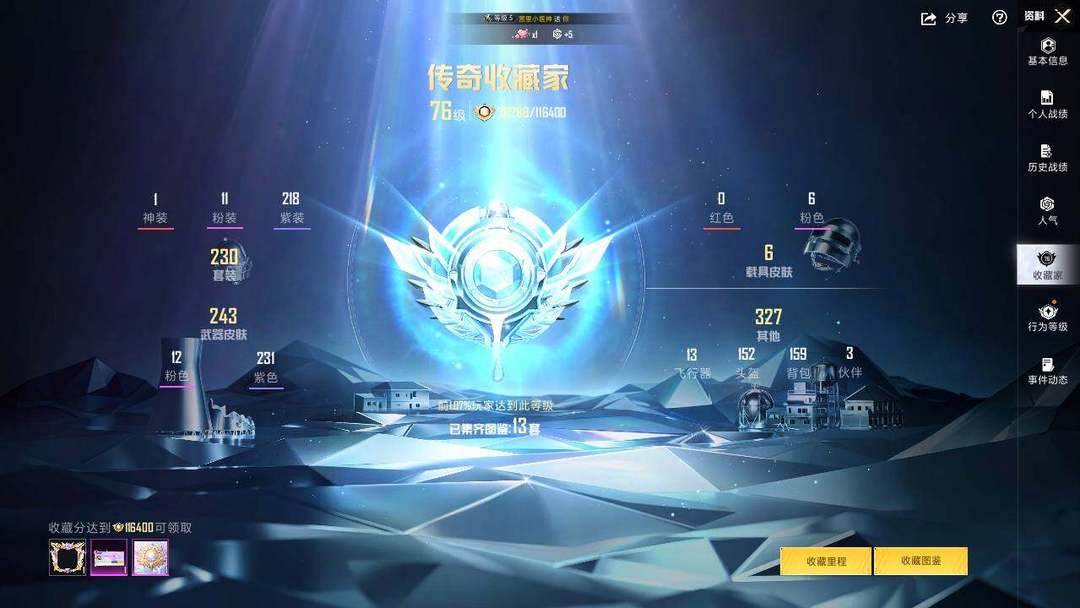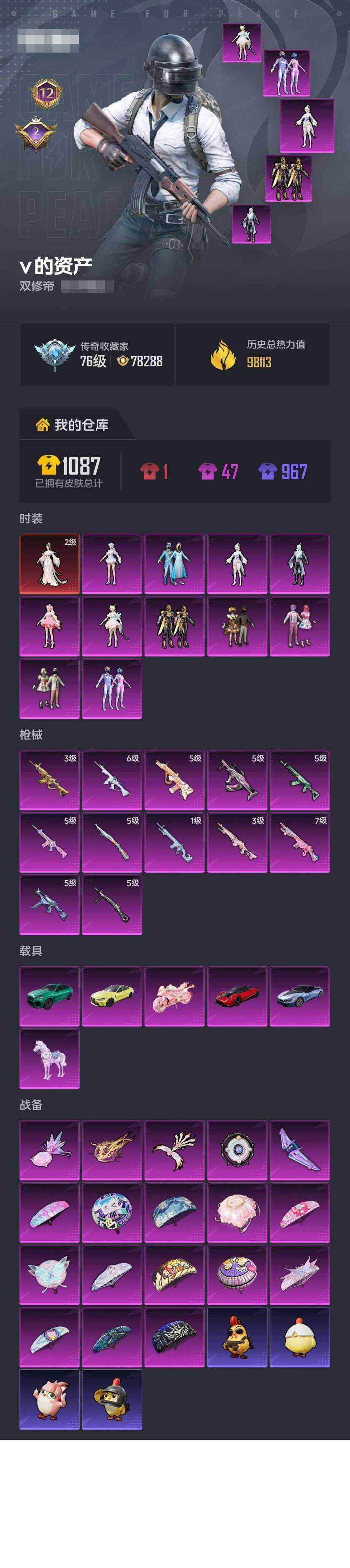 速玩号!1神装-11粉装-12特效枪-6载具-5粉色飞行器-12王牌印记-230套装-279枪皮【红色神装等级】:盛世惊鸿-云鸾(二级)【红色角色神装】:盛世惊鸿-云鸾【热门品类】:粉装-雪国幻梦,粉装-梦幻火箭,套装-浪漫天命,套装-派对舞王,套装-小丑鱼,套装-胖达团团,套装-胖达圆圆,套装-天网终结者,套装-沙漠守护者,套装-星河浪客,套装-浪客战士,套装-AG战队服,套装-龟仙人,套装-潮萌小黄鸭,套装-暗影哥特,熔岩游骑兵连帽夹克【粉色套装】:粉装-甜心巧克力,粉装-宝贝奶油派,粉装-天使彩虹糖,粉装-雪国幻梦,粉装-梦幻火箭,套装-创世·救赎,角色-伏羲圣卦,角色-女娲灵识,角色-晶梦幻蝶,角色-樱桃泡泡,角色-荧海星豚【粉色枪皮等级】:SCAR-L-金蛇镇世(三级),M416-电玩时刻(五级),M416-女娲灵识(六级),GROZA-镜光银凌(五级),AUG-暖羊咩咩(五级),M762-青锋波束(五级),UMP45-量子极限(五级),Kar98K-巳巳如意(五级),Mk14-盛世惊鸿(三级),Mk14-樱桃泡泡(七级)