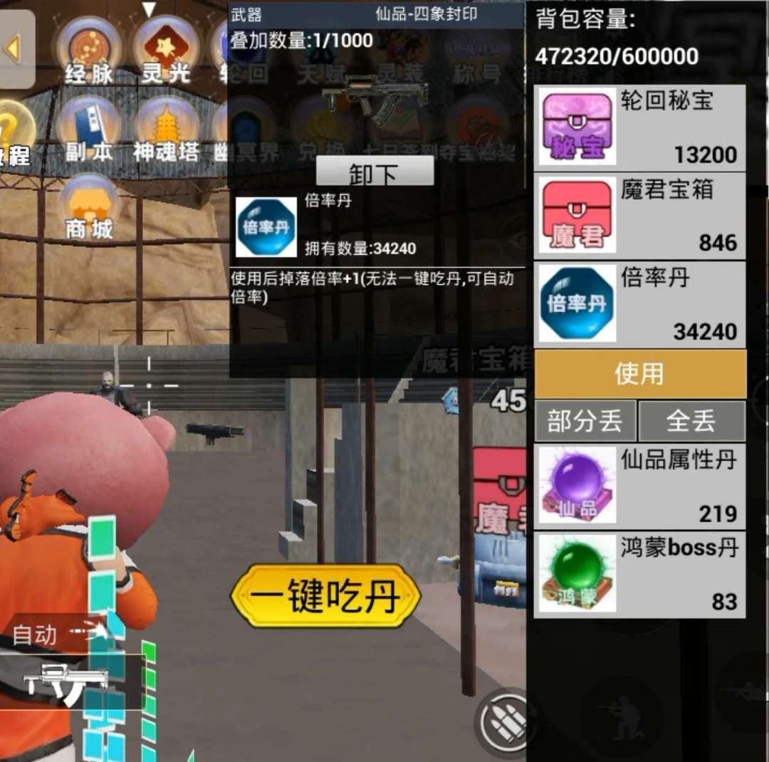 吃丹修仙行720w倍率有ace2狗杂,现在目前段位是无量可打13和八阶。有神话灵光。