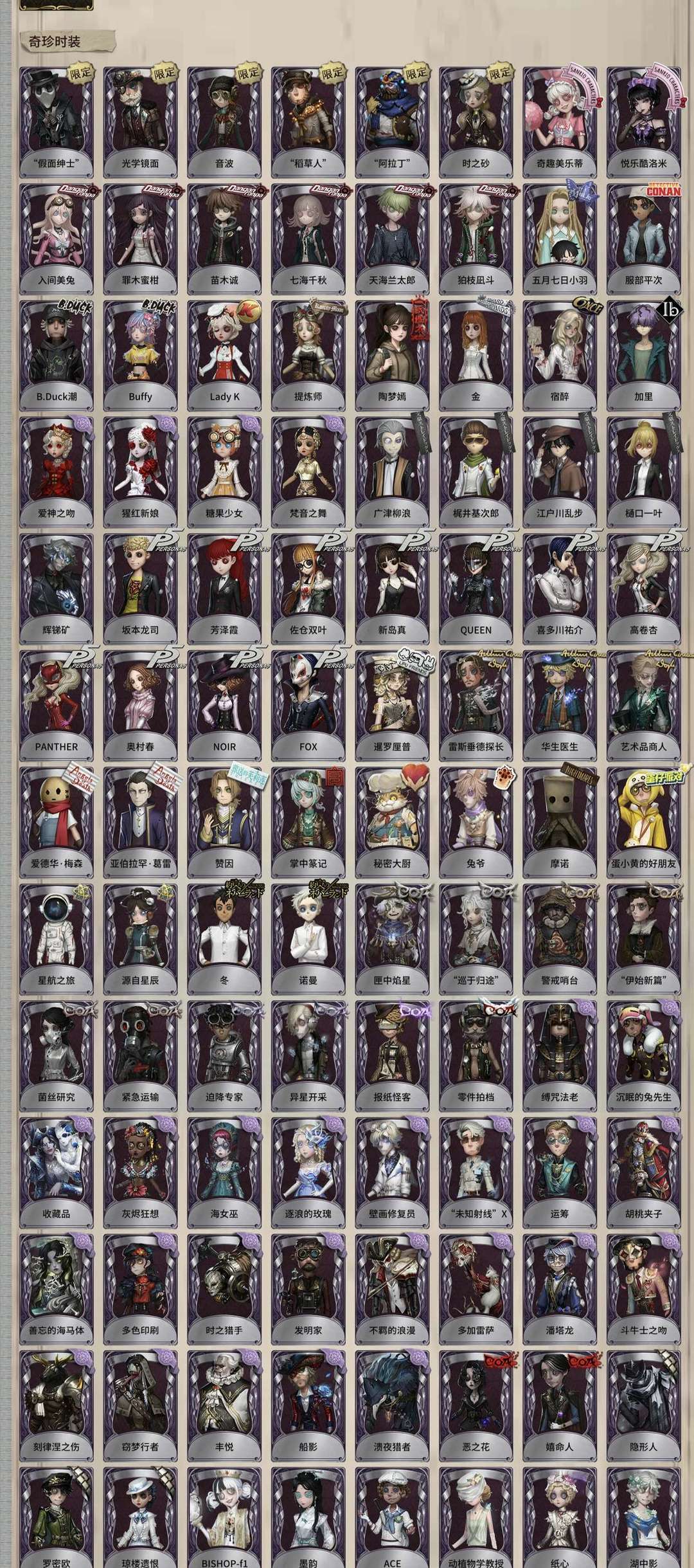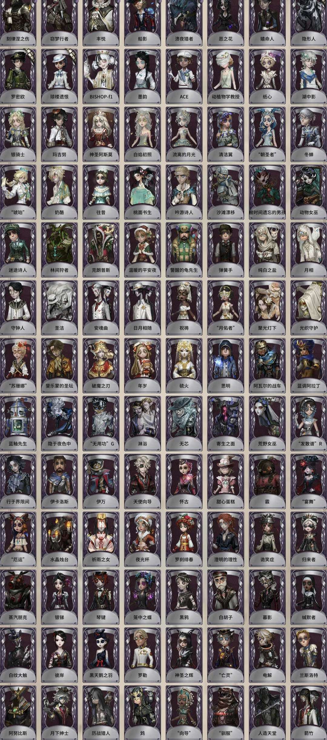 于此岸赴宴 此在无栖 珍奇柜 永恒 哲人石 蚀日者 司药 溯光 嗜金海怪 夜行枭 太中芥敦 招风旗 变脸王 盛夏飞盘 福尔摩斯 joker 明智吾郎 竹华 西尔菲德 贝拉夫人 鬼烛 初晴 海盐特调 灵犀妙探 今夜不再 怪鸟 星辰长夜 川上富江 柴郡猫 拉塔托斯克 冠军舵手 尼德霍格 花祭 暗金蛋糕 引路人 盖提亚之遗 寻宝贵族 约瑟夫恒光 黑鹫