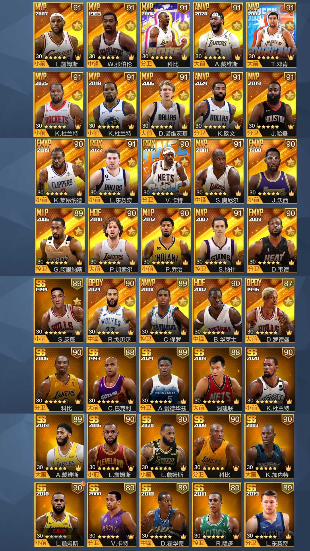天选火箭杜兰特❤️可排位16天58点❤️张伯伦❤️扣篮篮板特效❤️典藏浓眉❤️邓肯戈贝尔那司欧詹科杜