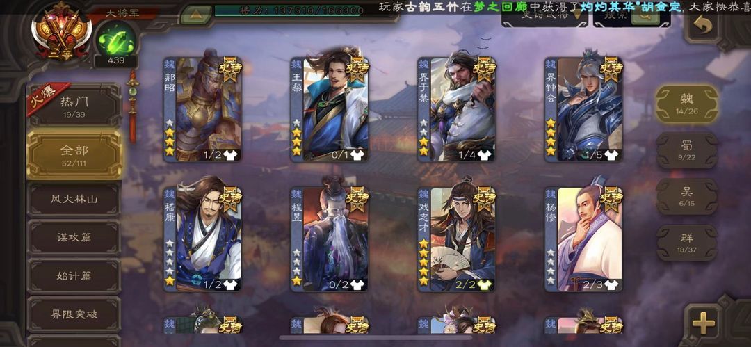 53史诗】大将军★动徐荣★玉龙动神荀彧★双形态界钟会动界动谋貂蝉52史诗动神陆逊动留赞动王元姬
